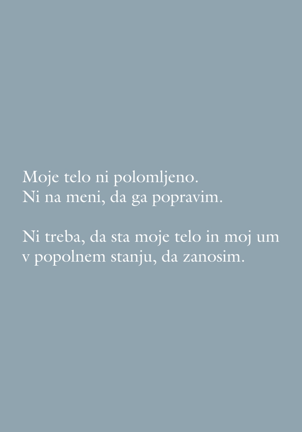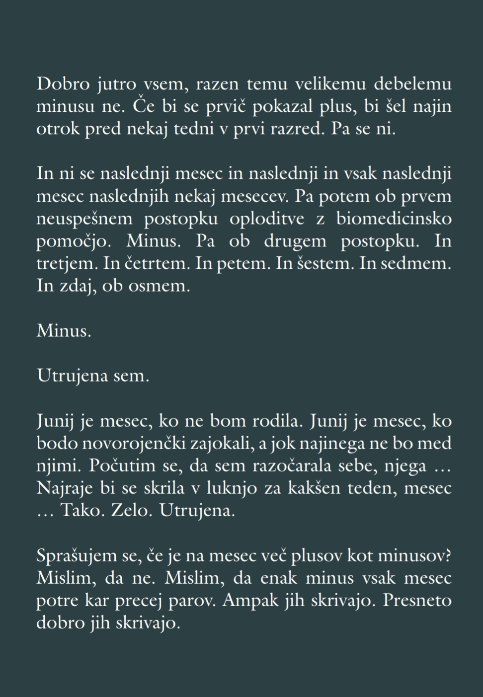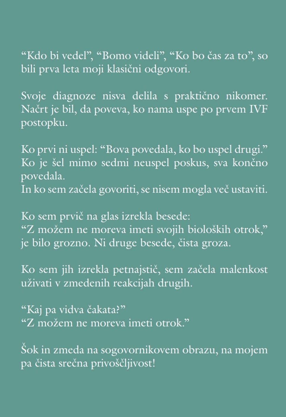 “Kartico Mama bom, bom vzela s seboj na kliniko! V zadnji žep, da me bo spomnila, kaj prižge mojo dušo.” Ana