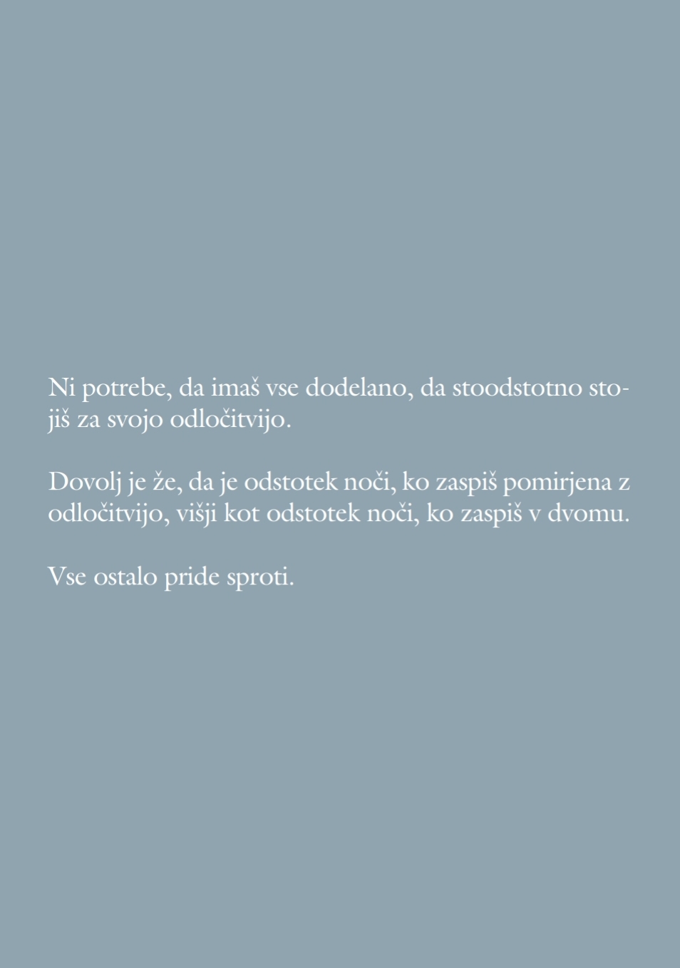 Iskrene, brez filtra, s skupkom razbremenilnih stavkov, vzpodbudnih besed, normalizacije občutkov in jasnih napotkov za samopomoč.